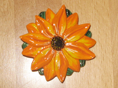 Brooch - ductile material, watercolour, lacquer.