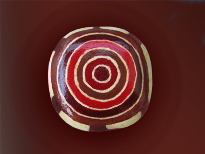 Brooch - ductile material, watercolour, lacquer.