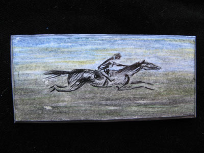 Brooch - ductile material, watercolour, lacquer.